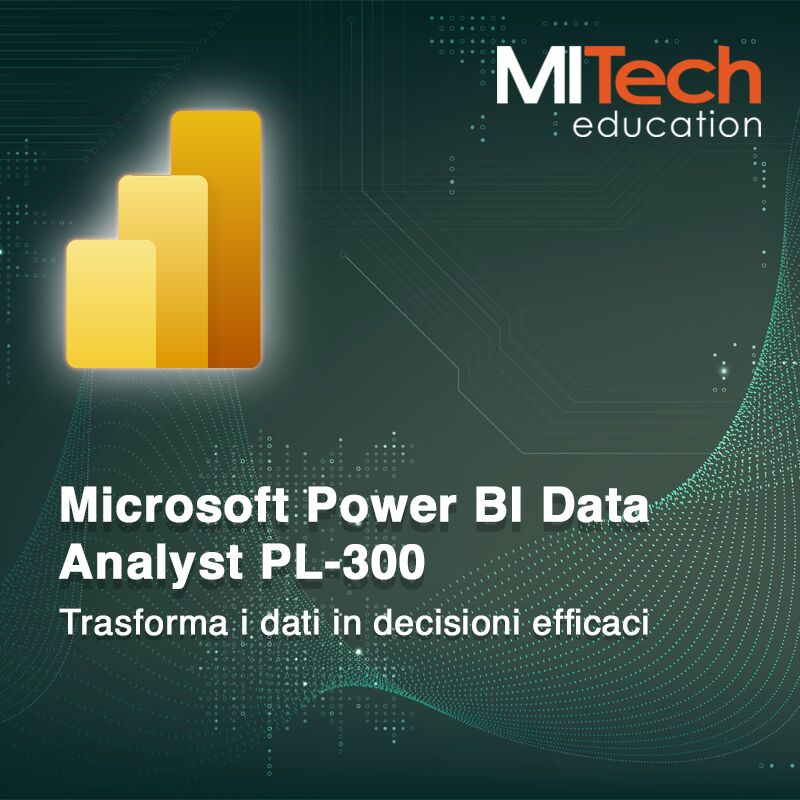 Scopri il corso Microsoft Power BI Data Analyst PL-300T00 di MiTech Education e impara a trasformare dati grezzi in dashboard interattive e insight strategici per decisioni aziendali migliori.